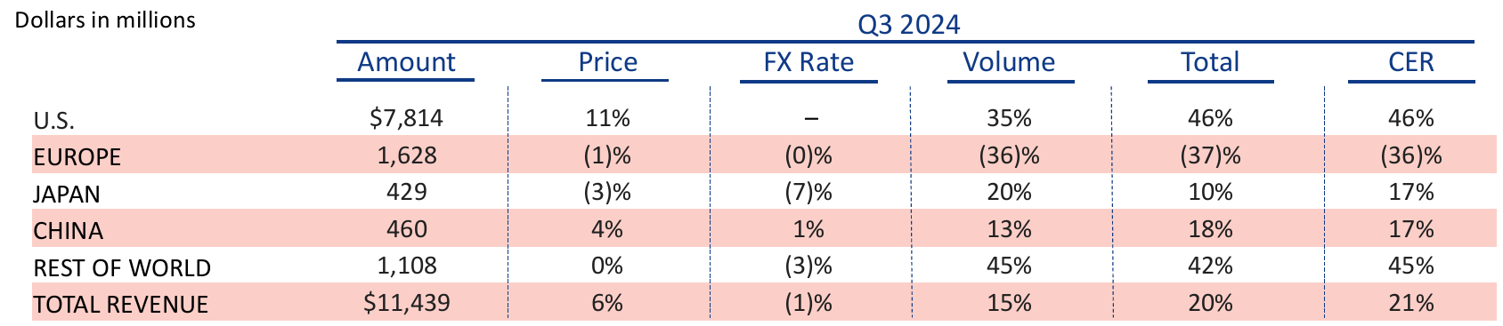 - 3Q24 Eli Lilly price/rate/volume effect on revenue (Source: Eli Lilly)
