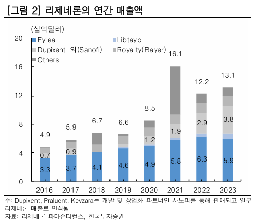 Regeneron Pharmaceuticals revenue by product (Source: 한국투자증권)