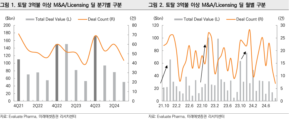 $300 mn 이상 M&A/licensing deal trends (Source: 미래에셋증권)