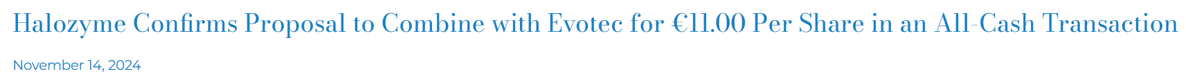 Evotec (XTRA: EVT, NASDAQ: EVO) acquisition proposal from Halozyme Therapeutics