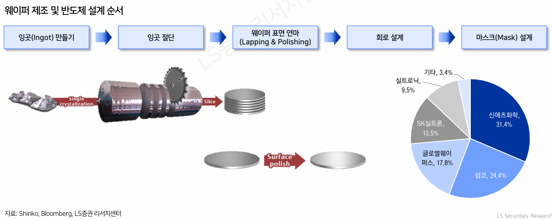 - 반도체 웨이퍼 제조 및 설계 순서, 웨이퍼 market share (Source: LS증권)