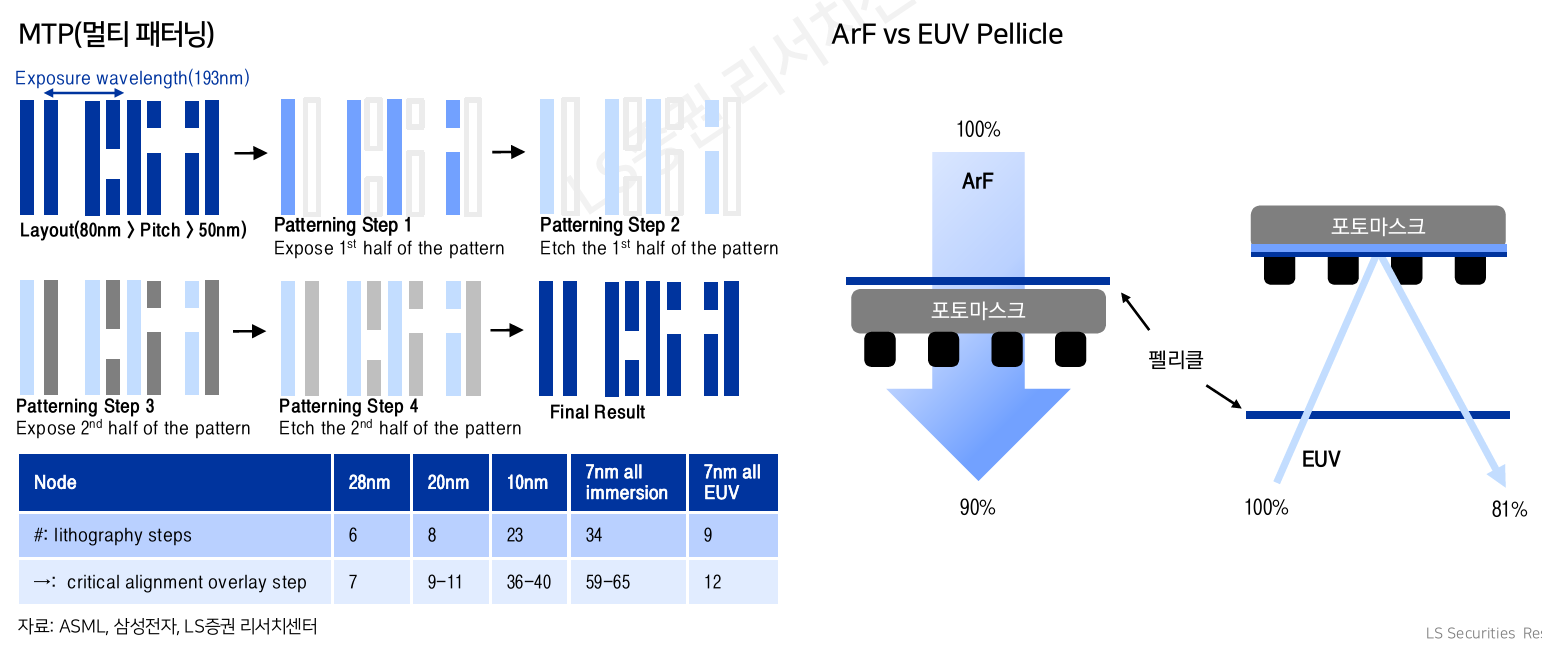 Multi patterning/ArF vs. EUV comparison (Source: LS증권)