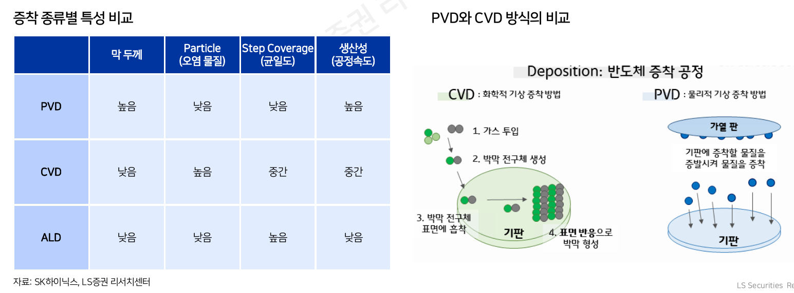 - PVD/CVD/ALD comparison (Source: LS증권)