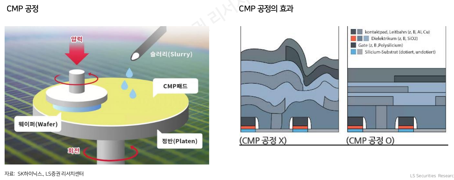 HBM 적층 수가 증가하면서 두께가 얇아지고 있어서 CMP 공정 수요가 증가하고 있음