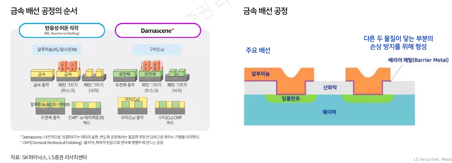 열심히 깎고 쌓은 층을 금속 배선으로 연결해야 함