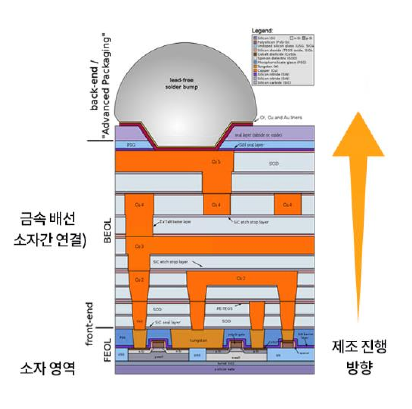 - 비용이나 수율 문제로 시스템 반도체 일부에만 도입되어 있음