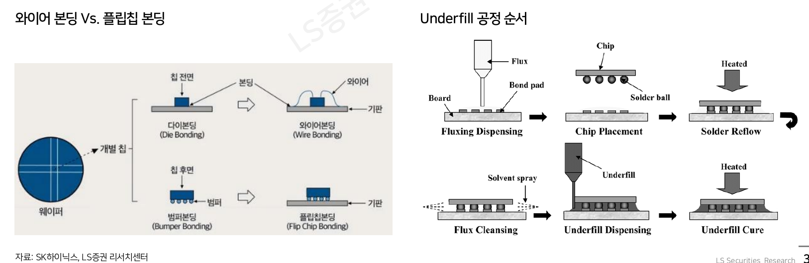 - Wire/flip chip bonding/Underfill process (Source: LS증권)