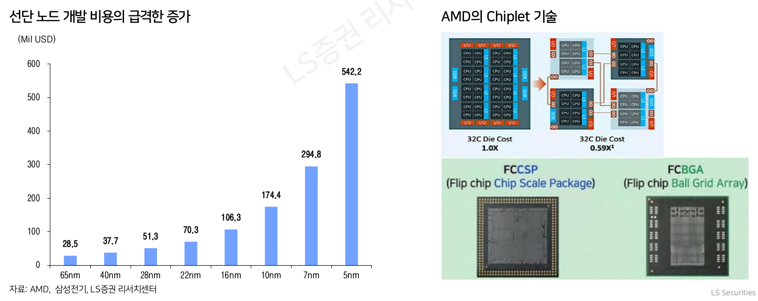 Node development expense trends/Chiplet technology (Source: LS증권)
