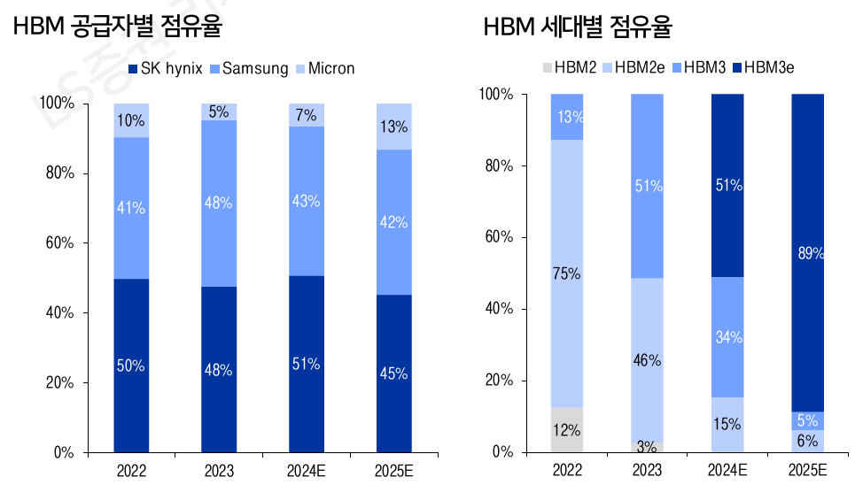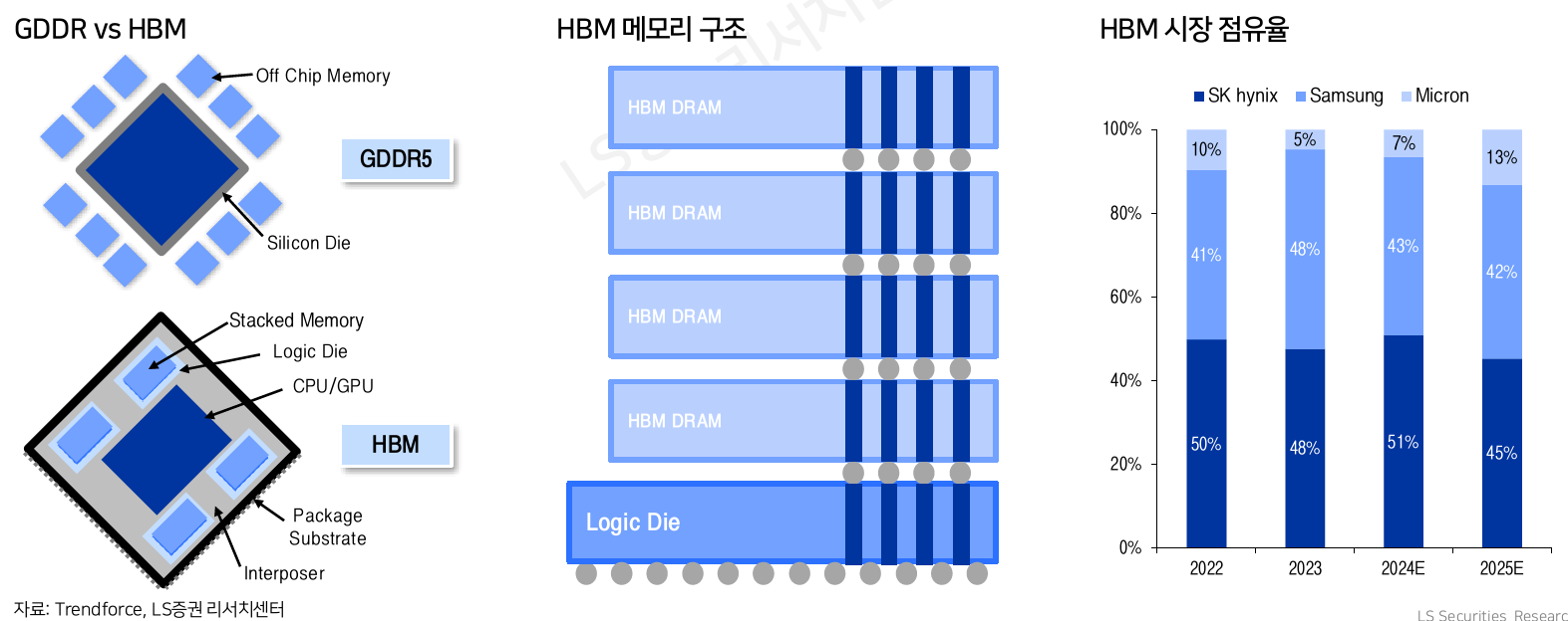 - GDDR vs. HBM/HBM structure/HBM market share (Source: LS증권)