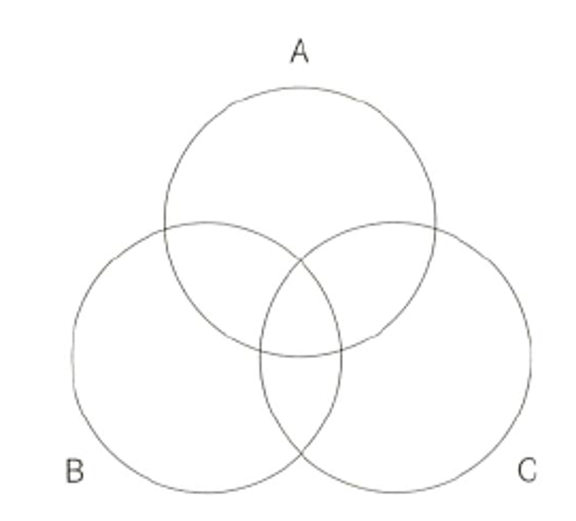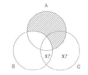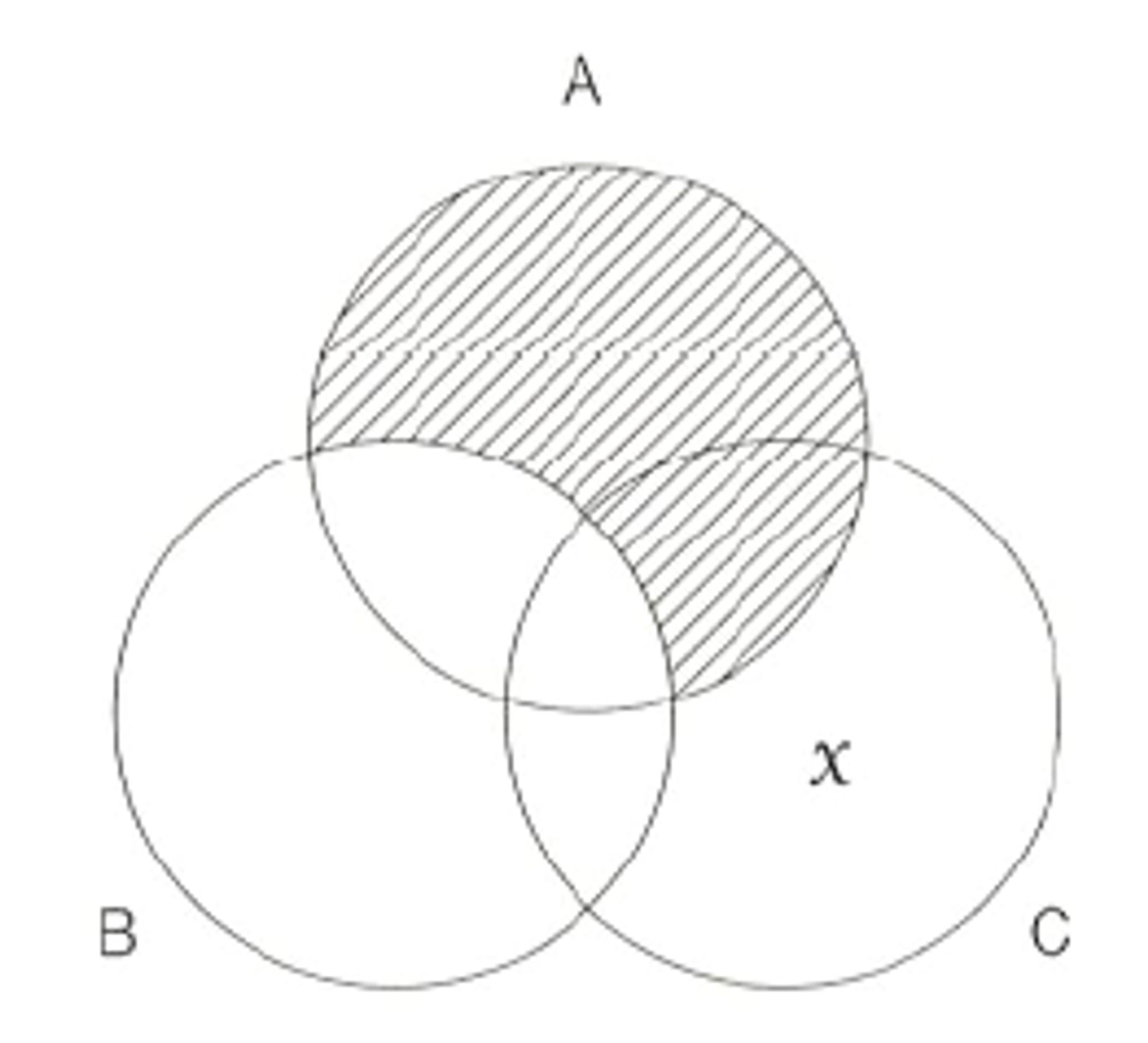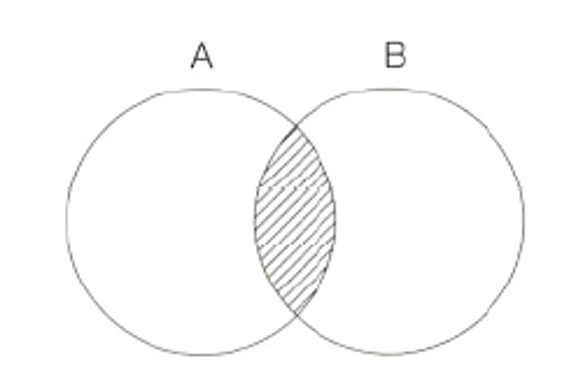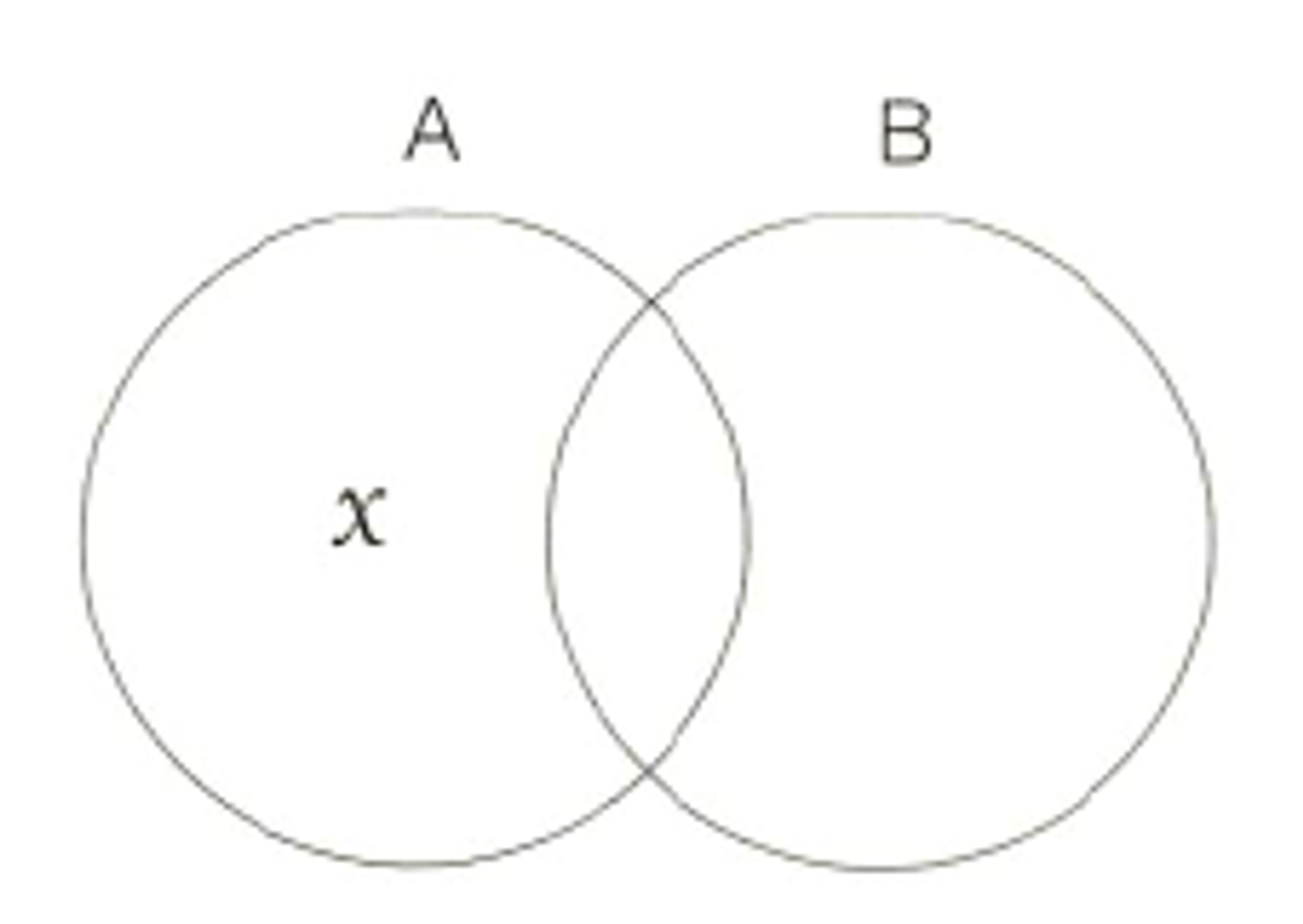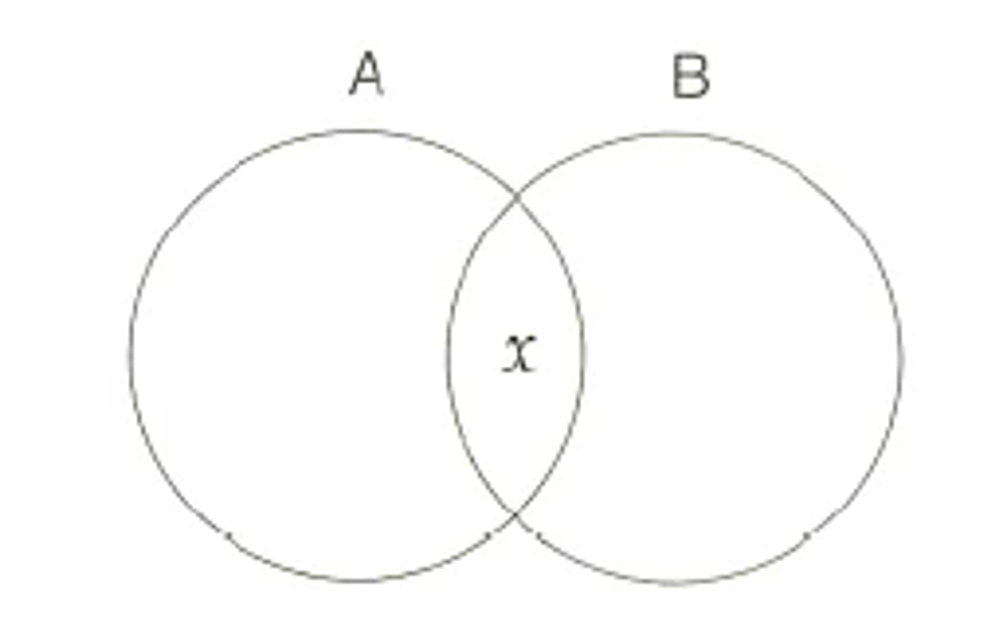 여기서 집합 A와 집합 B가 중복되는 곳에 표시된 x는 두 집합들에 동시에 속하는 원소가 있음을 보여 준다.