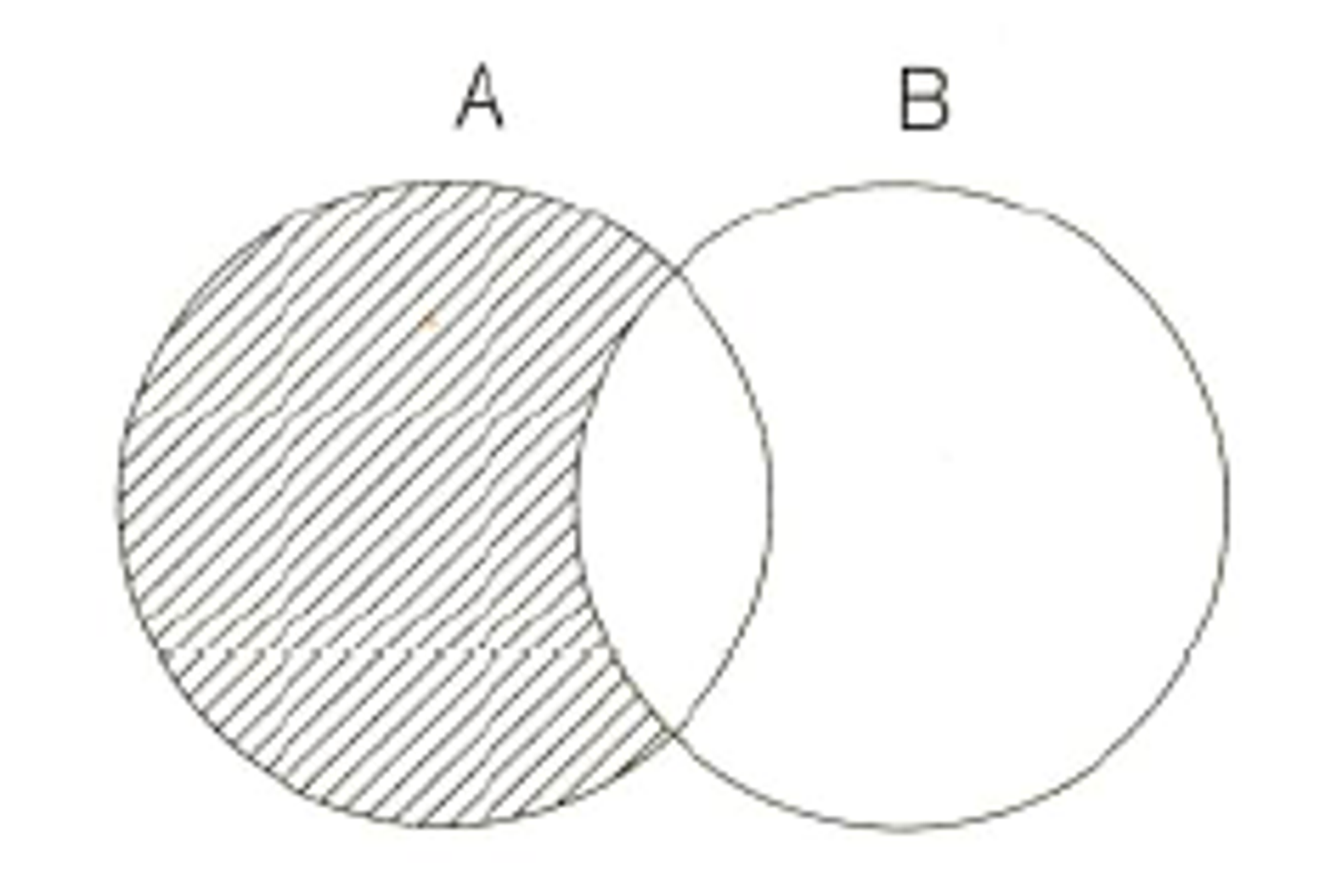 위 다이어그램은 집합 B에는 속하지 않지만, 집합 A에는 속하는 원소가 있음을 보여 준다.